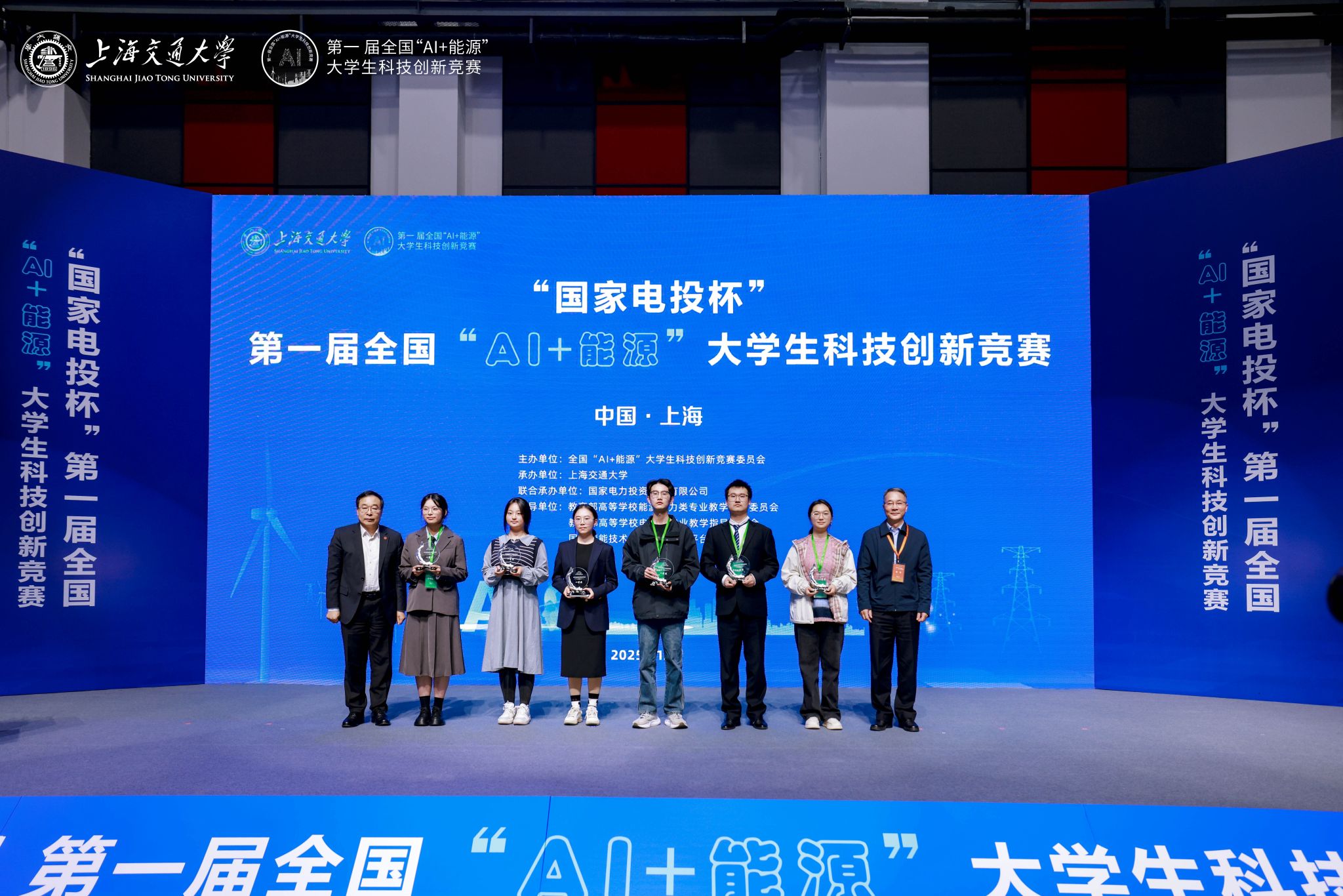 12月6日至12月7日,首届全国“AI+能源”大学生科技创新竞赛在上海交通大学智慧能源创新学院圆满落下帷幕,竞赛由上海交通大学智慧能源创新学院创始院长黄震院士联合清华大学、浙江大学、西安交通大学、星空彩票3D版、大连理工大学六所高校共同发起,在教育部高等学校能源动力类专业教学指导委员会、教育部高等学校电气类专业教学指导委员会、国家储能技术产教融合创新平台指导下,上海交通大学和国家电投集团联合承办,该赛事是全国首个以人工智能与能源两大战略领域深度融合为主题的大学生科创竞赛,旨在响应国家“双碳”目标和数字中国建设需求,搭建产学研用一体化创新平台,激发青年学生的创新活力,为国家能源绿色转型与智能化发展提供人才支撑。