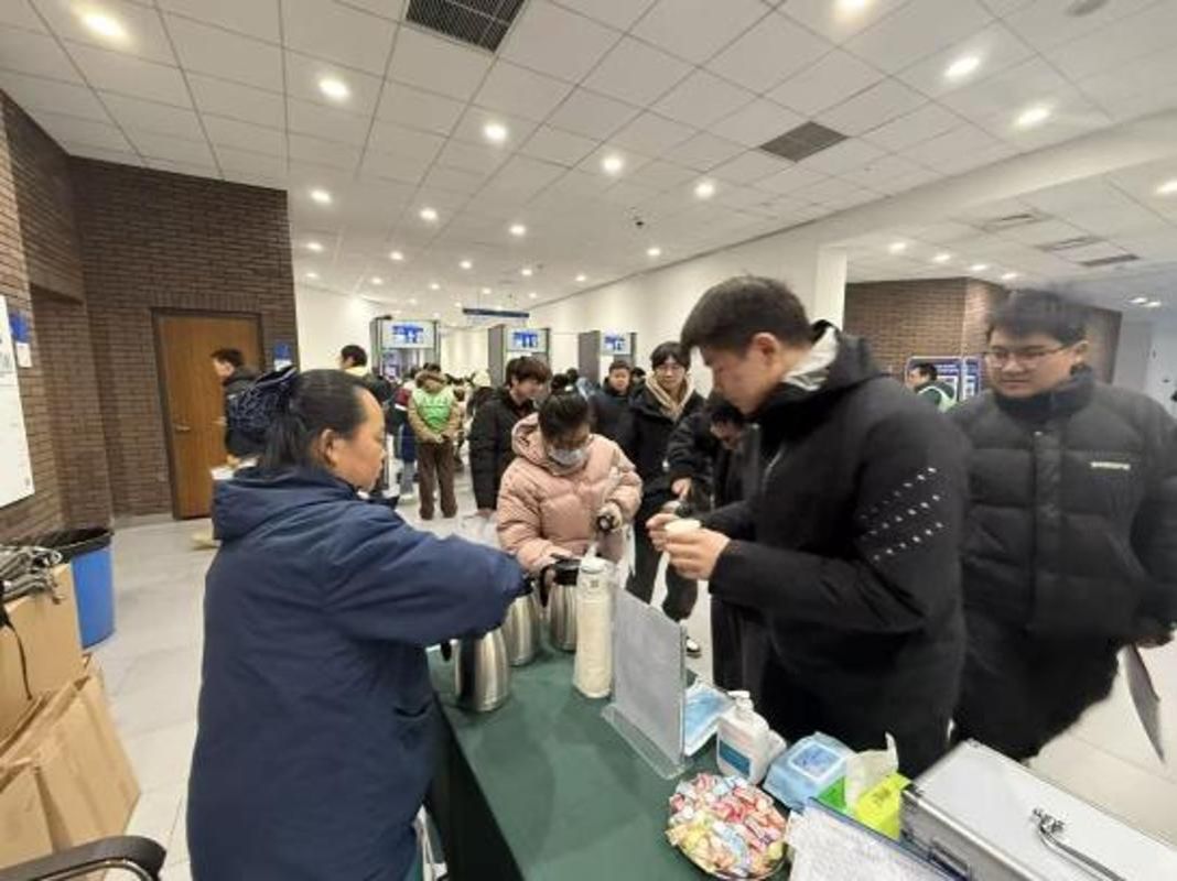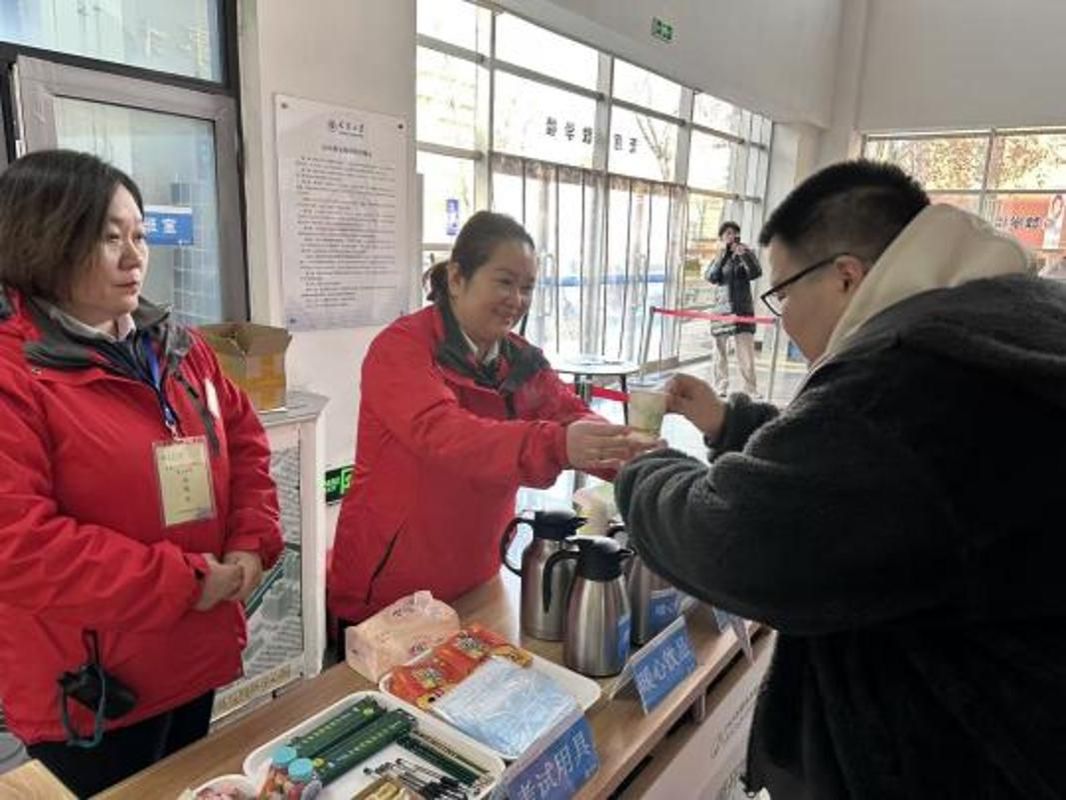学校着力营造温馨考场环境,为考生传递温暖与关怀。考前安排专人全面保障供热与供电系统,细致排查教室桌椅、窗帘、钟表校准、卫生间设施及校园铃声系统,并对考场区域进行通风消杀。考场楼入口处为考生贴心准备了红糖姜茶、2B铅笔、签字笔、糖果、小食品、咖啡等暖心物资,以细致服务传递来自星空彩票3D版的诚挚祝福。学校还在两校区食堂特别开辟考生专用绿色通道,设置休息区域,并延长部分窗口午餐供餐时间至14:00,打造“研”途食力补给站。食堂在考研期间全面开放便捷支付方式,方便校外考生快速就餐,着力营造舒适的用餐环境。学校积极倡议校内师生错峰就餐,为考生预留充裕的用餐时间与空间,全方位做好考试期间后勤保障。各学院也以多种方式为研考考生鼓气加油。