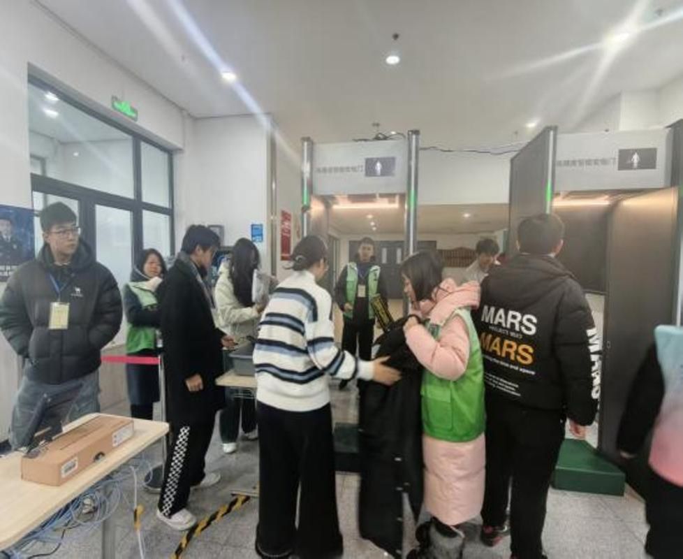 我校以数字化赋能组考管理,切实推动质量提升与效率优化,全力保障考试公平公正。严格落实“六位一体”防护网建设要求,对试卷跟踪、人脸识别、信号屏蔽和降频、安全检查、智能巡查等环节,做到提前布局、反复演练。通过精准调试设备性能,设置人物分离模式,确保考生能够顺利、高效地通过“人脸识别+智能安检门+手持金属探测器”一体化入场核验。同时,强化考务人员的线上与线下“双渠道培训”,全面夯实组织基础与技术支撑。