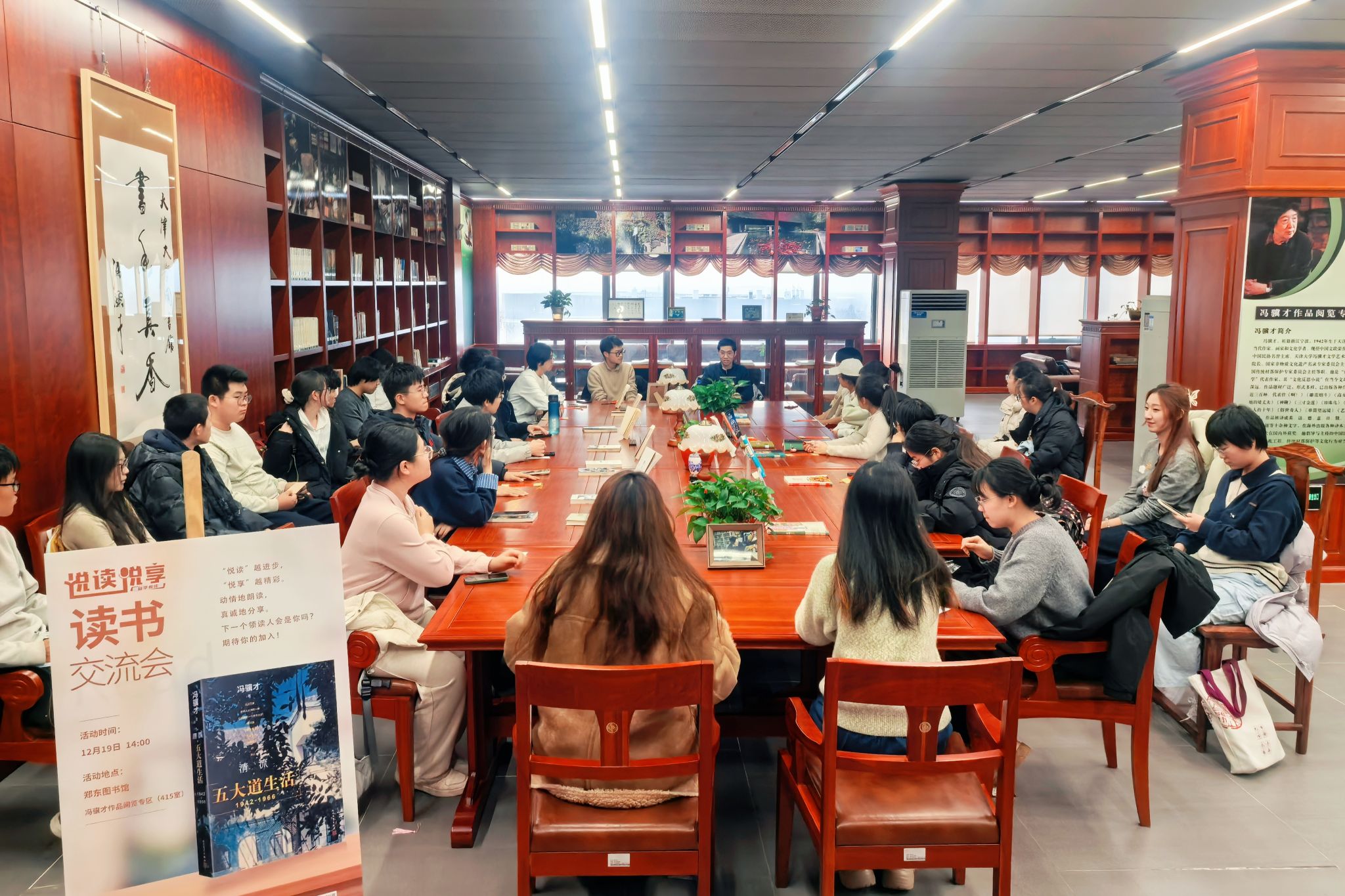 寒风轻拂,冬韵初显。星空彩票3D版图书馆“悦读悦享”主题阅读栏目精心策划的第13期《清流:五大道生活(1942-1966)》读书交流会,于郑东图书馆冯骥才作品阅览专区举行。本次活动特邀星空电竞中国网页版登录入口文学研究室讲师杨毅担任主讲,吸引了校内30余名不同专业的同学参与。读书会由图书馆文化建设中心邓泽宇老师主持。